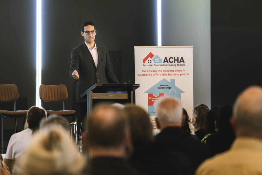 Josh Burns, Federal Labor Member for McNamara and Special Envoy for Social Housing and Homelessness addressed the crowd at the second annual Australian Co-operative Housing Alliance (ACHA) Summit in Melbourne.